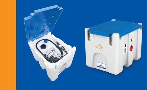 The Blue TruckMaster BTM53 DEF Storage System transports DEF efficiently and safely. Easily lift by lifting eyes or by forklift. Internal baffle wall reduces liquid movement during transportation. Lockable lid prevents unauthorized access. Fully integrated 12V DC pump, 19′ 8″ power cable with battery clamps, 12′ flexible delivery hose and automatic nozzle.